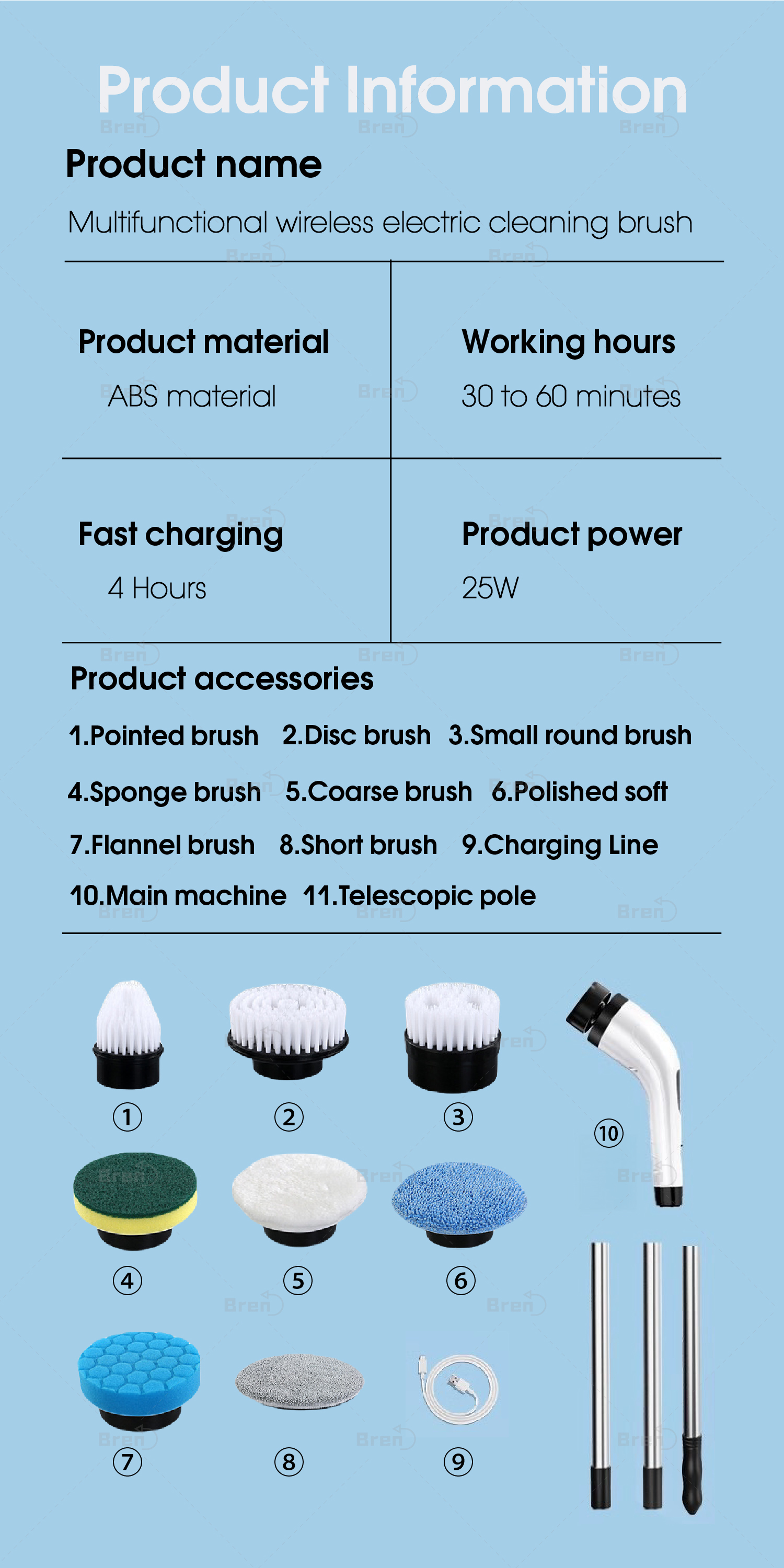 • Material: Durable ABS body with high-quality nylon bristles